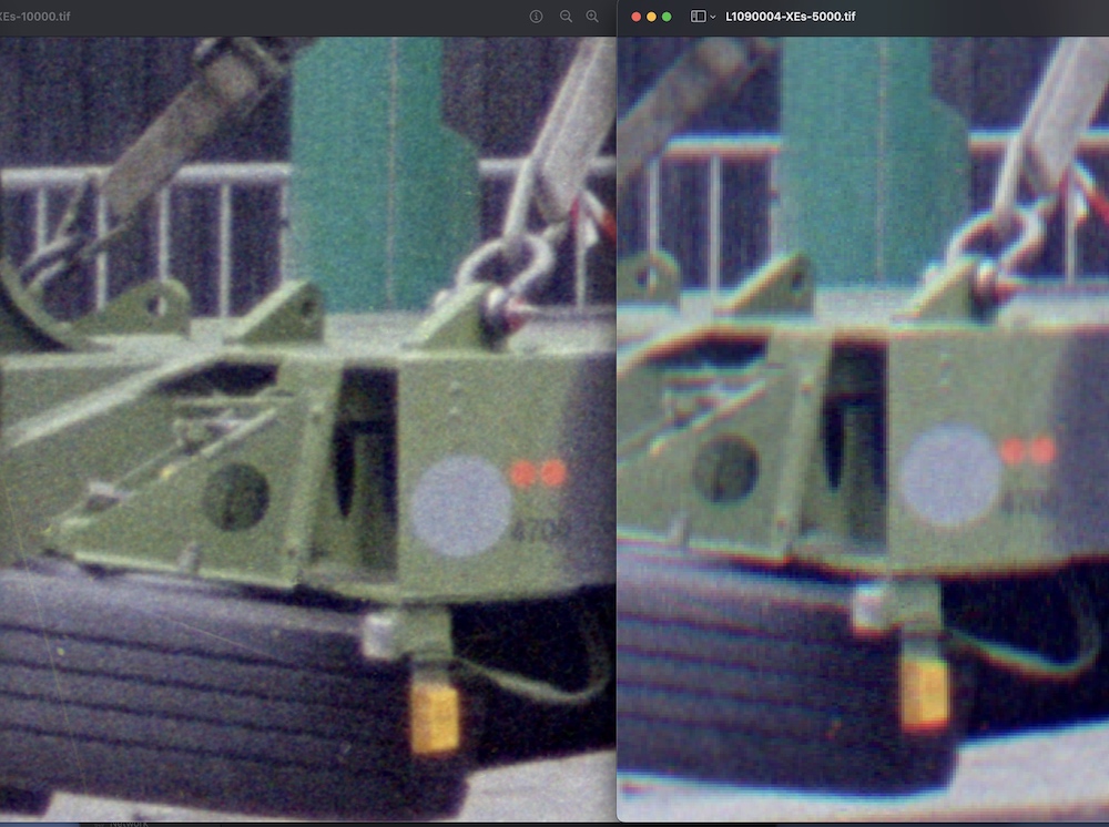 As related earlier my copy of the XEs scanner lasted c. 27 scans before failing so the consensus that this scanner is a bit of a lemon is not far from the truth however I managed to fix mine and once repaired it appears to work quite well. The resolution of the scanner is stated as 10000 dpi which according to other sources is probably bending the truth somewhat but in my case even though the resolution is erroneous I can only compare the output with what I got with the Epson 700 and the camera scan method. Using the 10000 dpi setting it looks to give better resolution than the other two methods. I can't comment on the Canon FS4000 since I sold that before going down the V700 route (it was slow) and I'm unable to conduct like for like tests.