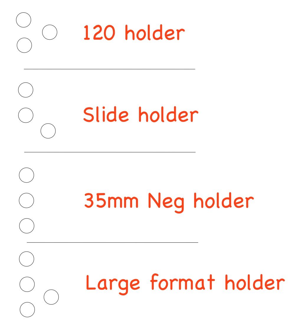 The Essential Film Holder (EFH) has been modified since I have found that feeding the film strip through was a wee bit loose - I prefer the film to be clamped and in order to allow quick frame changing I have adapted the EFH to handle a standard ABC type film holder. Basically I can now have about 4 or 5 film holders preloaded with negatives and then just feed them through the EFH.