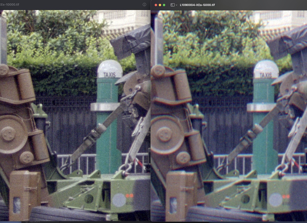 As related earlier my copy of the XEs scanner lasted c. 27 scans before failing so the consensus that this scanner is a bit of a lemon is not far from the truth however I managed to fix mine and once repaired it appears to work quite well. The resolution of the scanner is stated as 10000 dpi which according to other sources is probably bending the truth somewhat but in my case even though the resolution is erroneous I can only compare the output with what I got with the Epson 700 and the camera scan method. Using the 10000 dpi setting it looks to give better resolution than the other two methods. I can't comment on the Canon FS4000 since I sold that before going down the V700 route (it was slow) and I'm unable to conduct like for like tests.